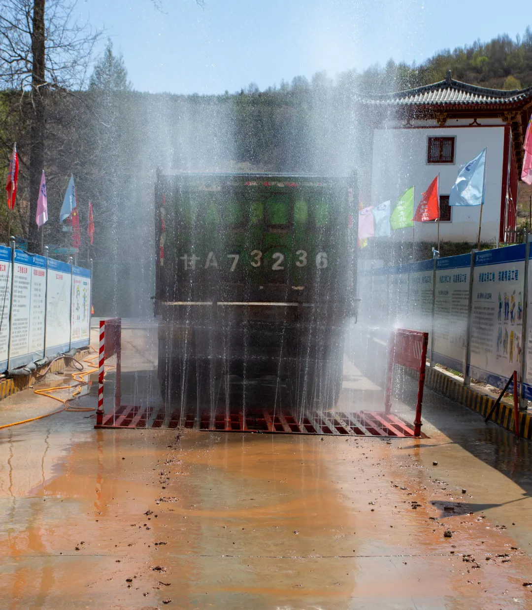 五一期間主要進行A區(qū)消防車道路基基礎(chǔ)及人行步道混凝土澆筑壓花;B區(qū)1#酒店渭水山莊主體施工、戶外單體墻體砌筑及屋面施工;C區(qū)消防車道路基基礎(chǔ)及停車場基礎(chǔ)施工等。
