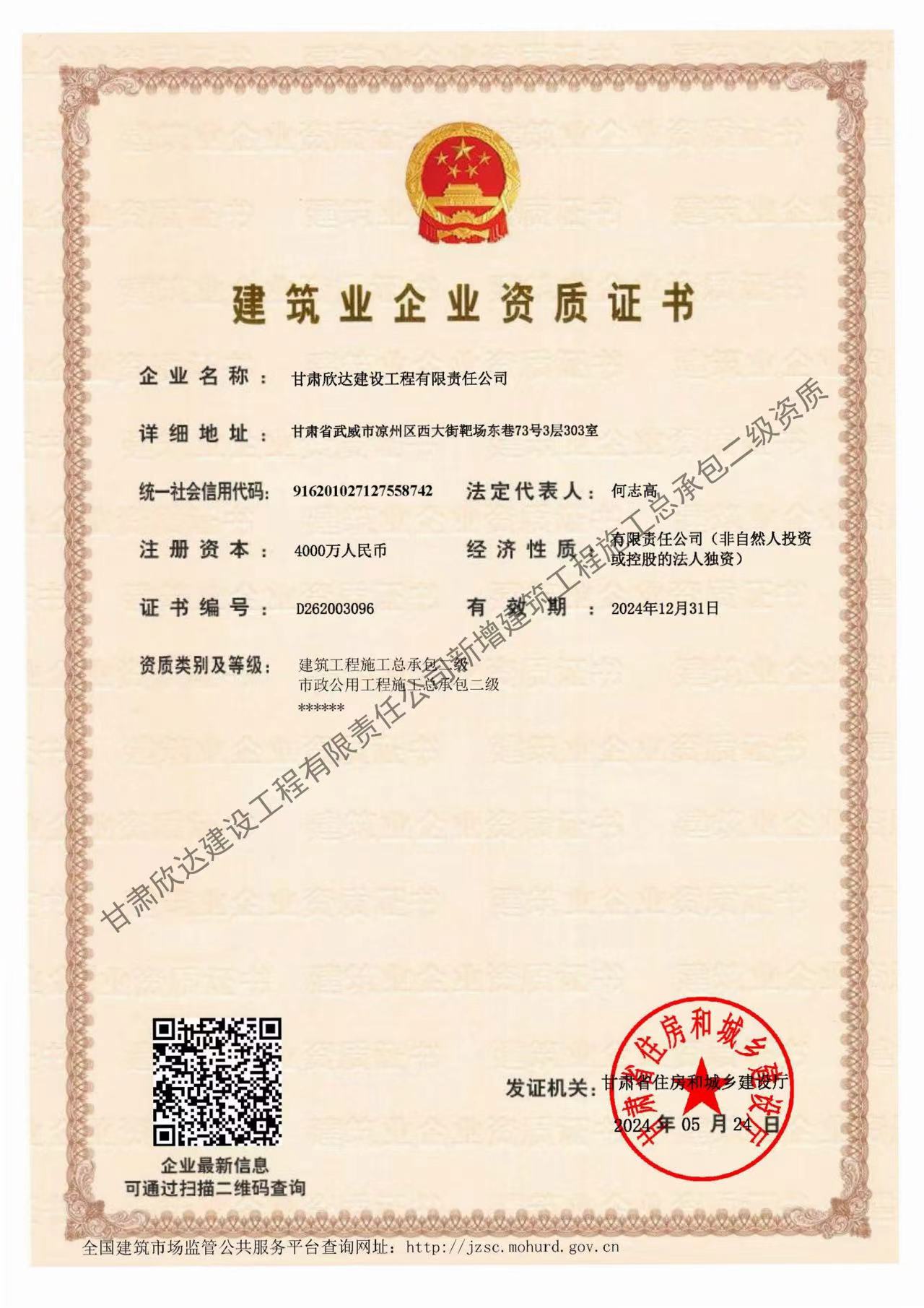 5月28日,經(jīng)甘肅省住房和城鄉(xiāng)建設(shè)廳核準(zhǔn),蘭州市政建設(shè)集團(tuán)子公司甘肅欣達(dá)建設(shè)工程有限責(zé)任公司成功新增“建筑工程施工總承包二級(jí)”資質(zhì)。
