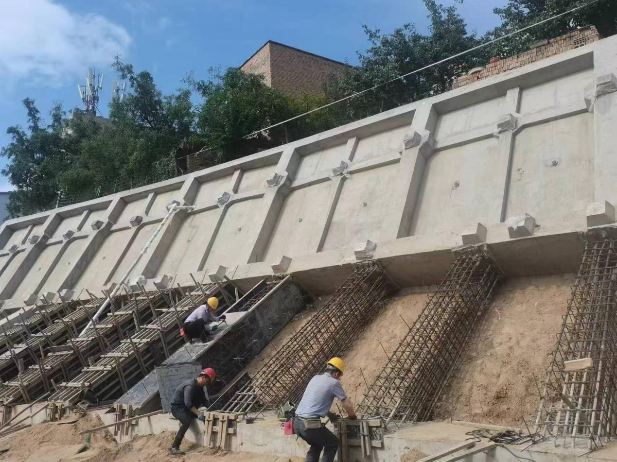 蘭州博文科技學(xué)院操場邊坡加固工程,邊坡加固全長313.2米,邊坡高12米。面對(duì)工期緊、任務(wù)重、施工難度大等困難,項(xiàng)目部全體人員群策群力,履職盡責(zé)、團(tuán)結(jié)協(xié)作,以確保安全、質(zhì)量為前提,搶抓施工進(jìn)度。特別是進(jìn)入暑期,利用學(xué)生放假之際,項(xiàng)目部更是搶抓時(shí)機(jī),大干快上,扎實(shí)完成好各項(xiàng)施工任務(wù)。截至目前,累計(jì)完成土釘墻支護(hù)2160m;擋墻反壓土9986.37m3;框架格構(gòu)后背填筑水泥土503m3;框架格構(gòu)21.6m,加固錨桿、錨索、樁基工程正在全力施工,已完成工程總量的70%。