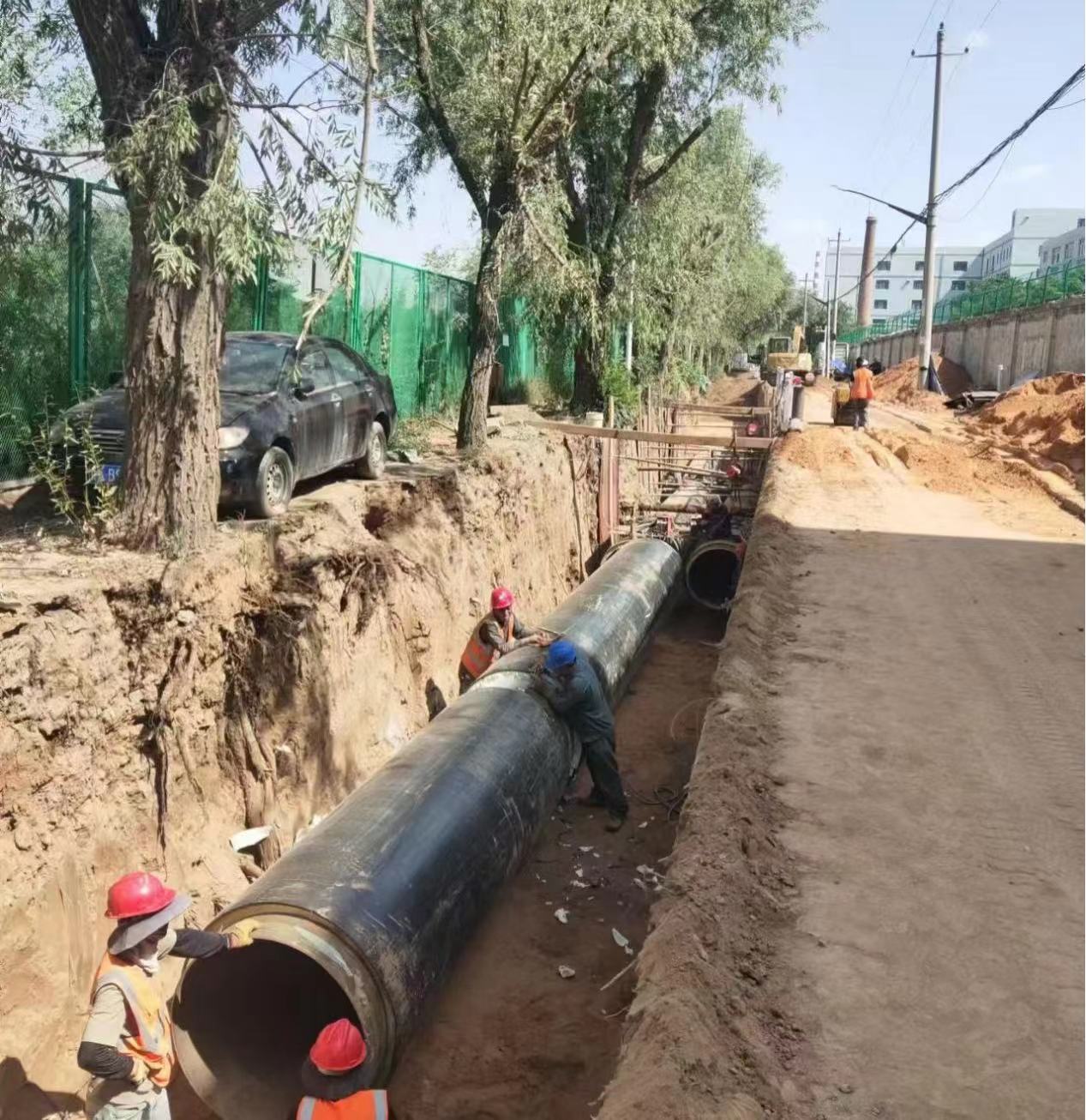 熱電聯(lián)產(chǎn)城市一次供熱管網(wǎng)建設(shè)項(xiàng)目(西固區(qū))施工工程T018/T020(寺兒溝管網(wǎng))管道工程,起點(diǎn)位于北側(cè)大唐熱電廠(蘭石化現(xiàn)狀管線處),終點(diǎn)位于西固中路清水橋東側(cè)綠化所休閑小公園。項(xiàng)目部針對(duì)施工任務(wù)重、工期緊,社會(huì)關(guān)注度高的特點(diǎn),對(duì)施工人員、施工機(jī)械、施工材料提前謀劃,精心安排,既符合工程施工要求,又避免造成人力物力的浪費(fèi)。目前正在施工的蘭州市六十四中門口段落720米,必須在8月25日(學(xué)生開學(xué)前)完工,現(xiàn)有混凝土道路寬度只有6米,溝槽設(shè)計(jì)寬度3.4米,工作面狹小,溝槽土方開挖、管材運(yùn)輸、管道回填難度加大,項(xiàng)目部采取分段施工、加班加點(diǎn)保質(zhì)量保工期,截至目前已完成620米的管道安裝,剩余100米確保在工期要求的節(jié)點(diǎn)前完工。