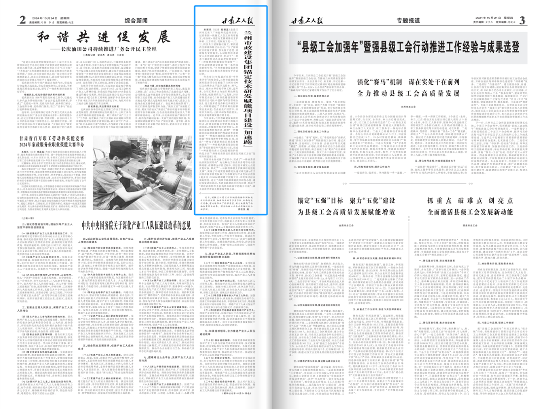 作為有73年發(fā)展歷史的“中華老字號(hào)”國(guó)有企業(yè),蘭州市政建設(shè)集團(tuán)有限責(zé)任公司承建了蘭州市90%以上的城市主干道以及給水、燃?xì)?、熱力、雨污水等市政管網(wǎng)工程,近年來(lái),公司匯聚各方力量以科技研發(fā)為動(dòng)能,賦能新質(zhì)生產(chǎn)力發(fā)展,2023年制定出臺(tái)《蘭州市政建設(shè)集團(tuán)有限責(zé)任公司技術(shù)創(chuàng)新與研發(fā)管理辦法》,設(shè)立技術(shù)委員會(huì)和技術(shù)研發(fā)中心,并順利通過(guò)了甘肅省科技創(chuàng)新型企業(yè)認(rèn)定。在企業(yè)生產(chǎn)經(jīng)營(yíng)中,以項(xiàng)目為依托,讓技術(shù)研發(fā)有的放矢,使企業(yè)高質(zhì)量發(fā)展后勁十足。