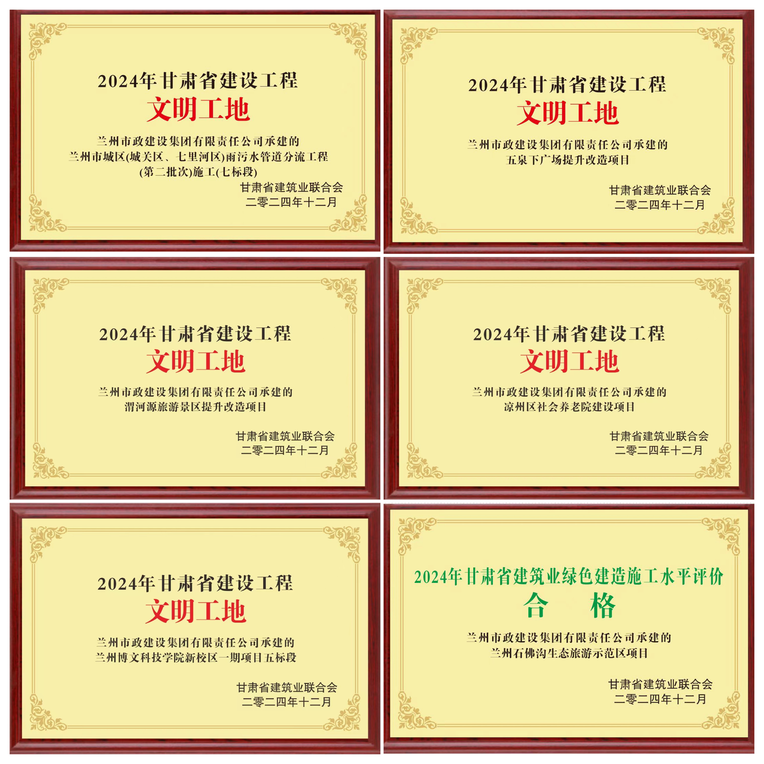 公司承建的涼州區(qū)社會養(yǎng)老院建設項目、蘭州博文科技學院新校區(qū)一期項目五標段、蘭州市城區(qū)(城關區(qū)、七里河區(qū))雨污水管道分流工程(第二批次)施工(七標段)、五泉下廣場提升改造項目、渭河源旅游景區(qū)提升改造項目獲評2024年“甘肅省建設工程文明工地”,蘭州石佛溝生態(tài)旅游示范區(qū)項目獲評“綠色建造施工水平評價合格項目”。